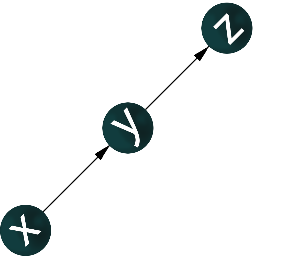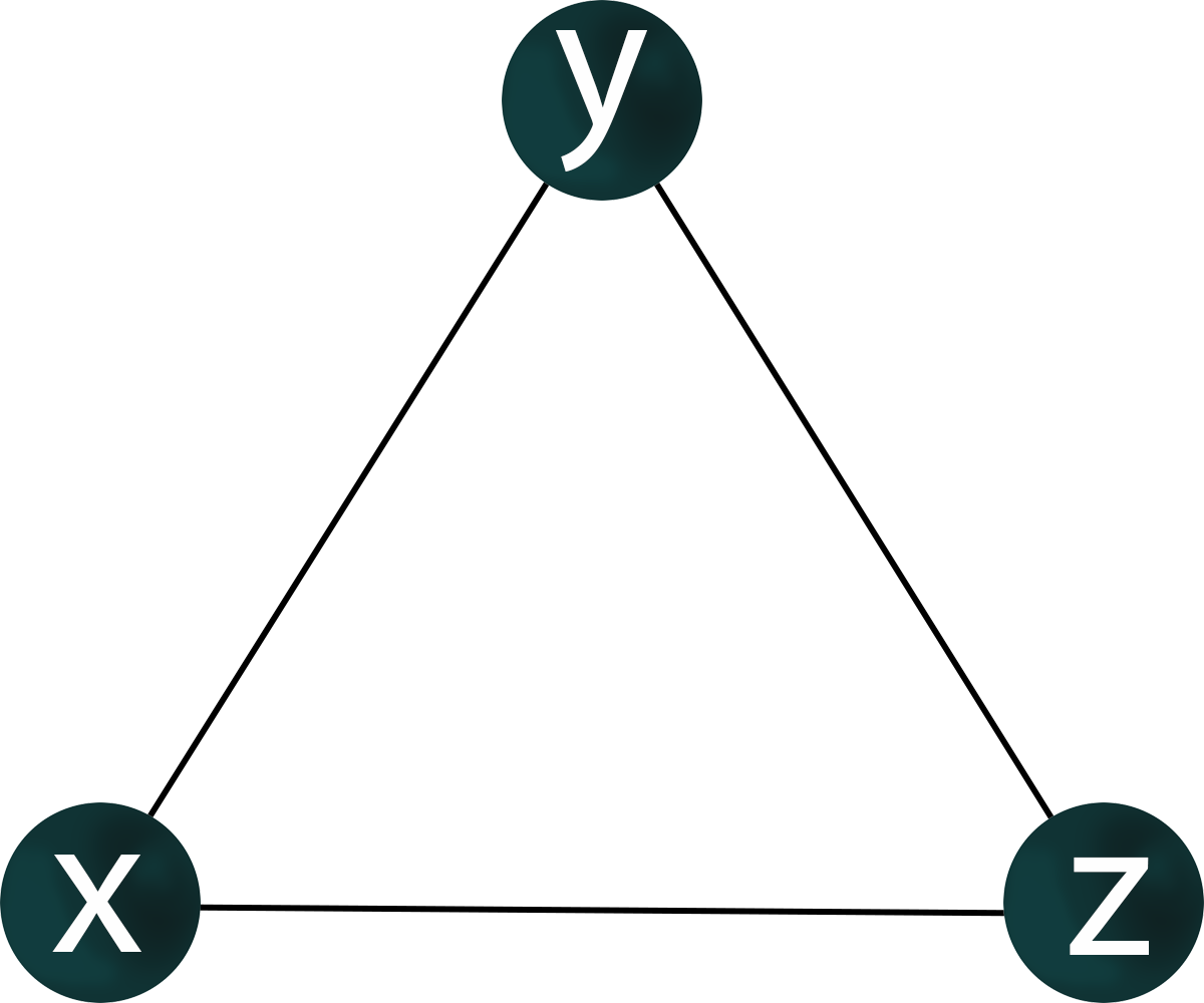 If genes x, y, z are co-expressed, nothing is known about regulatory relationships. For the co-expression of genes x, y, z, it is possible to construct a graph where the vertices corresponding to these genes have pairwisw connections.