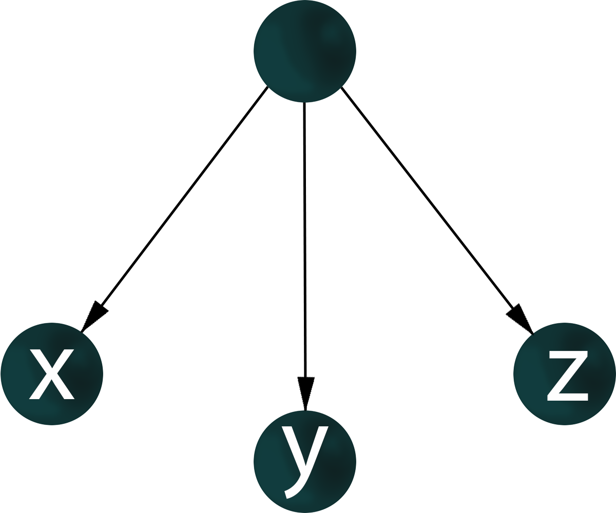 For a given structure of co-expression network of genes x, y, z, there may be many variants of the topology of the gene regulatory network.